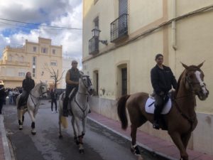 El sábado, 17 de enero, día de Sant Antonio, la lluvia obligaba a trasladar la bendición de los animales, procesión y posterior ‘Gorra’ al domingo, 18 de enero. Afortunadamente el mal tiempo daba una tregua y finalmente el domingo se pudo celebrar la festividad, con una gran participación de caballerías, tractores y por supuesto el ‘Carro Triomfant’, en el cual Vicente Aicart, tuvo el honor de ser el portado del santo.